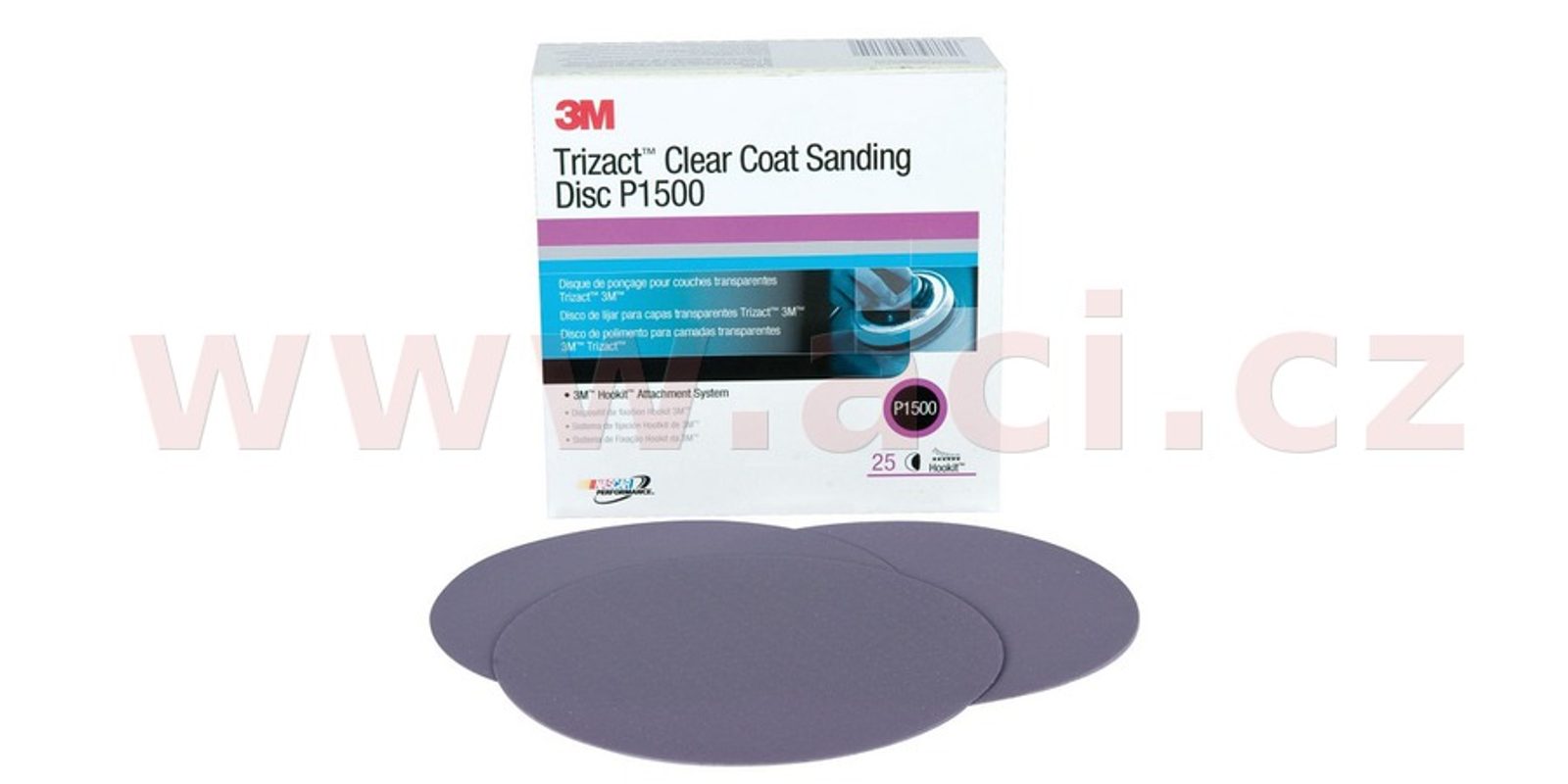 Brusný kotouč 3M Trizact se zrnitosí 1500, určený k odstranění hlubokých defektů v horní vrstvě laku.