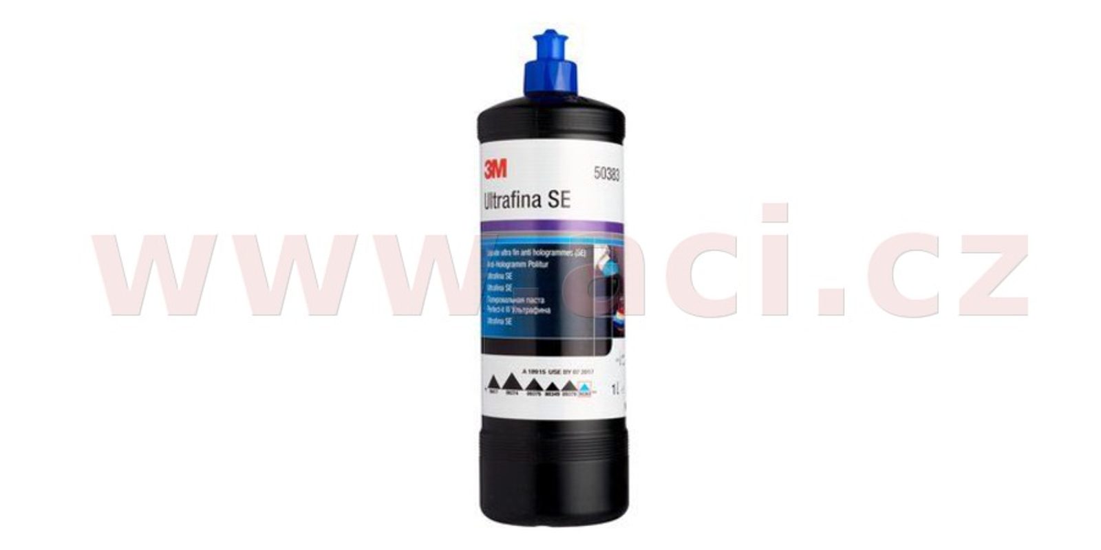 3M brusná pasta Perfect-it III ULTRAFINE SE - s tmavě modrým víčkem, která se používá na zaleštění kruhových stop a hologramů, ale i k běžnému leštění povrchů do vysokého lesku.