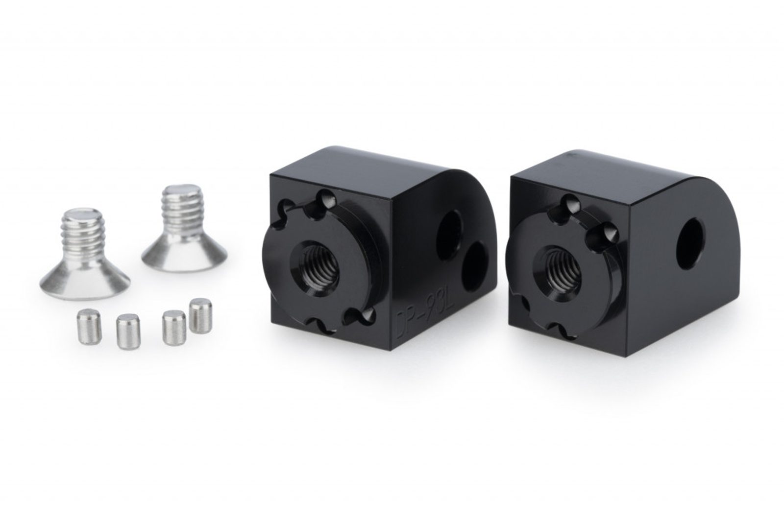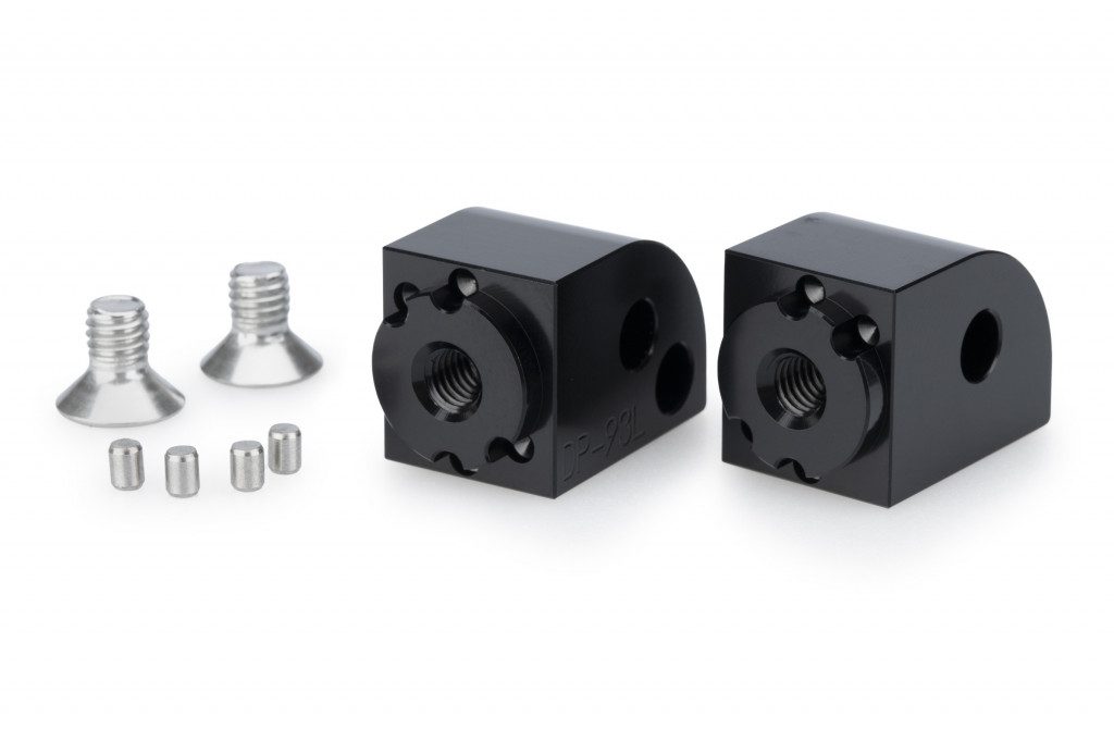 Vyrobeno z obráběného hliníkového bloku, tyto komponenty vynikají vysokou přesností a pevností. Jsou opatřeny černou eloxovanou povrchovou úpravou, která zajišťuje odolnost a elegantní vzhled. Jsou určeny přímo pro konkrétní model, což zaručuje perfektní kompatibilitu, a obsahují milimetrové značení umožňující nastavení stupačky s maximální přesností podle preferencí každého jezdce.