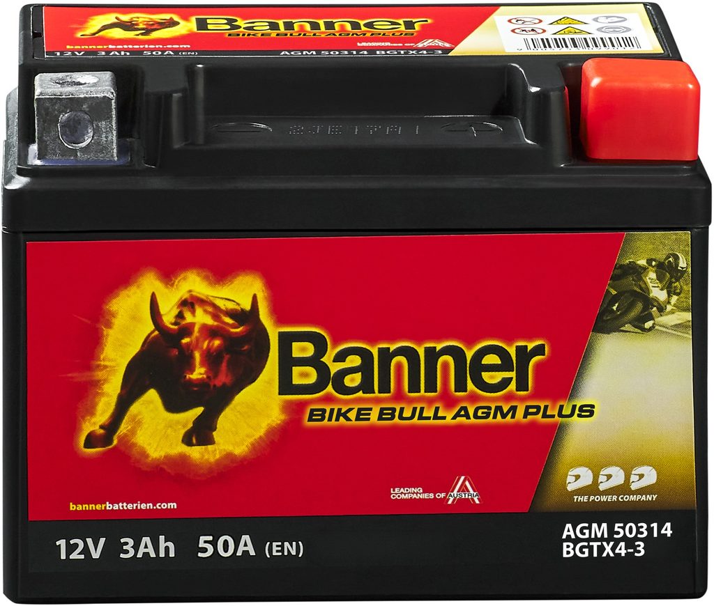 baterie AGM plus 12V, BGTX4-3, 3Ah, 50A, BANNER Bike Bull AGM PLUS 113x70x86