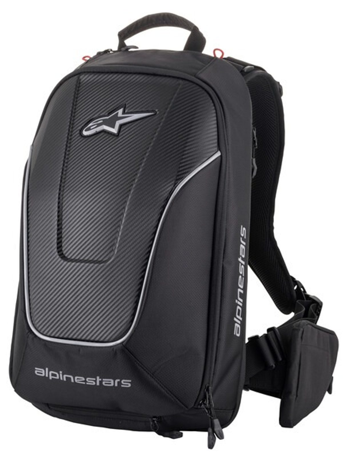 - Polstrovaný a odnímatelný popruh v úrovni pasu s integrovaným ledvinovým pasem a kapsami pro možnost odložení drobností.