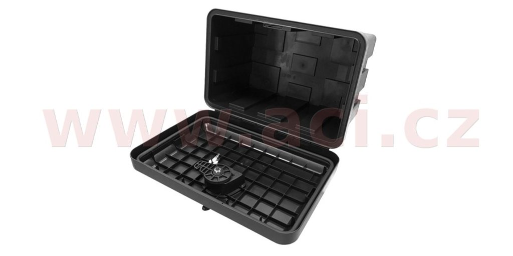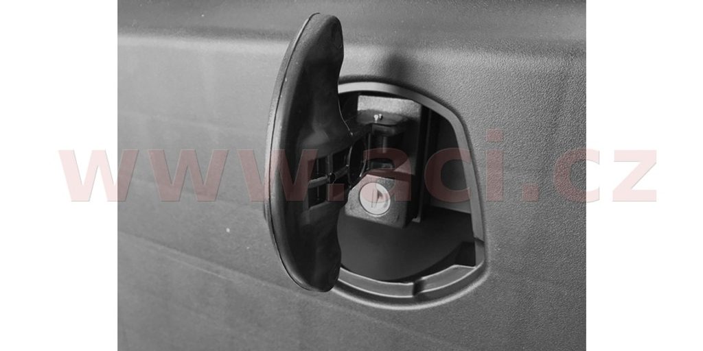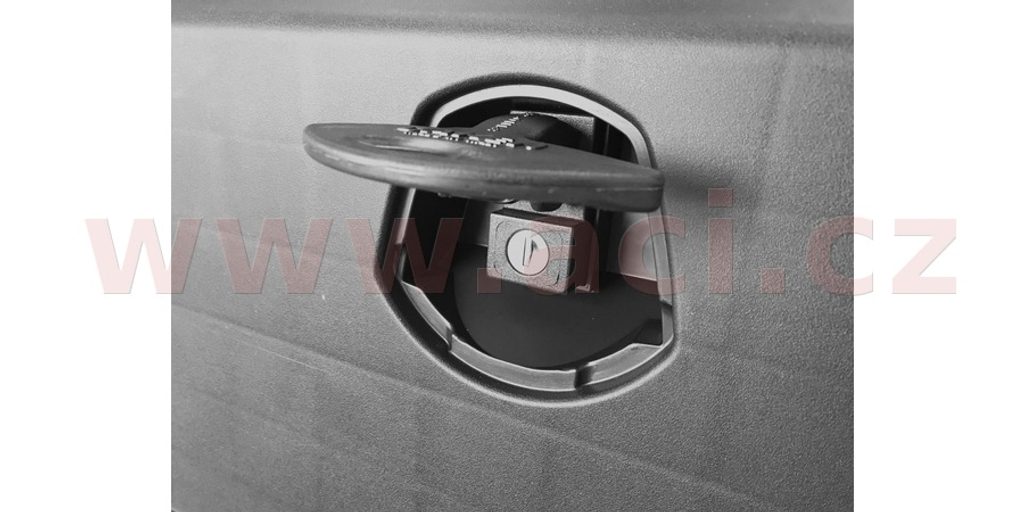Panty víka jsou u boxu JUST 500 R umístěny na delší straně. Díky jeho kompaktním rozměrům stačí k uzavření jeden otočný uzávěr. Uzávěr boxu je opatřen zámkem a plastovou krytkou zámku. Součástí dodávky jsou dva klíče.