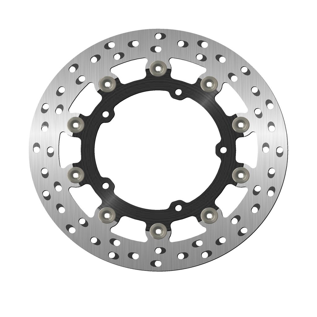 Barva brzdné plochy je výsledkem speciálního tepelného zpracování, které dodává oceli toto charakteristické duhové zbarvení, díky němuž bude váš stroj vynikat mezi ostatními. Chladící otvory nejsou orientovány vertikálně, ale horizontálně a jsou uspořádány ve skupinách po třech v každém směru. Ventilační otvory společně se speciálním tepelným zpracováním zabraňují přehřátí materiálu, které by mohlo vést k deformaci kotouče.