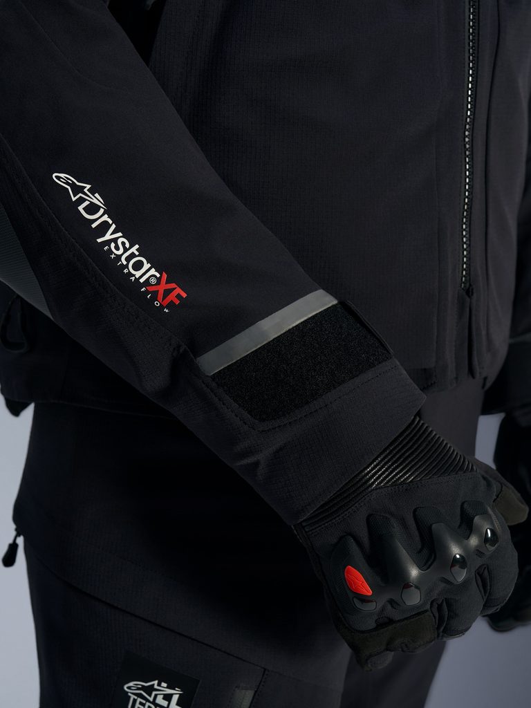 • Obšívka z pokročilé strečové textilie s třívrstvou, laminovanou konstrukcí obsahující klimatickou membránu DRYSTAR®XF.