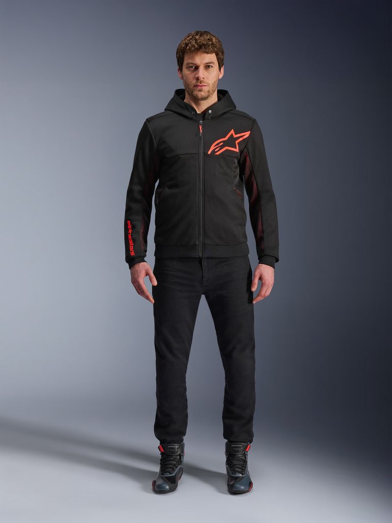 Bunda CHROME AIR SPORT HOODIE je navržena pro městský provoz tak, aby poskytla perfektní ochranu proti oděru. Toho je dosaženo díky podšívce z aramidových vláken v oblasti ramen a loktů. Nové řešení se síťovinovými panely umístěnými v podpaží a na vnitřní straně rukávů utváří tuto bundu vhodným společníkem pro jízdu během vysokých teplot. Bunda se vzhledem volnočasové mikiny, kterou je možné sebejistě nosit i mimo jízdu na motocyklu. Součástí vnitřního uspořádání jsou odnímatelné protektory loktů a ramen řady NUCLEON FLEX PLUS, které jsou špičkou ve své třídě.