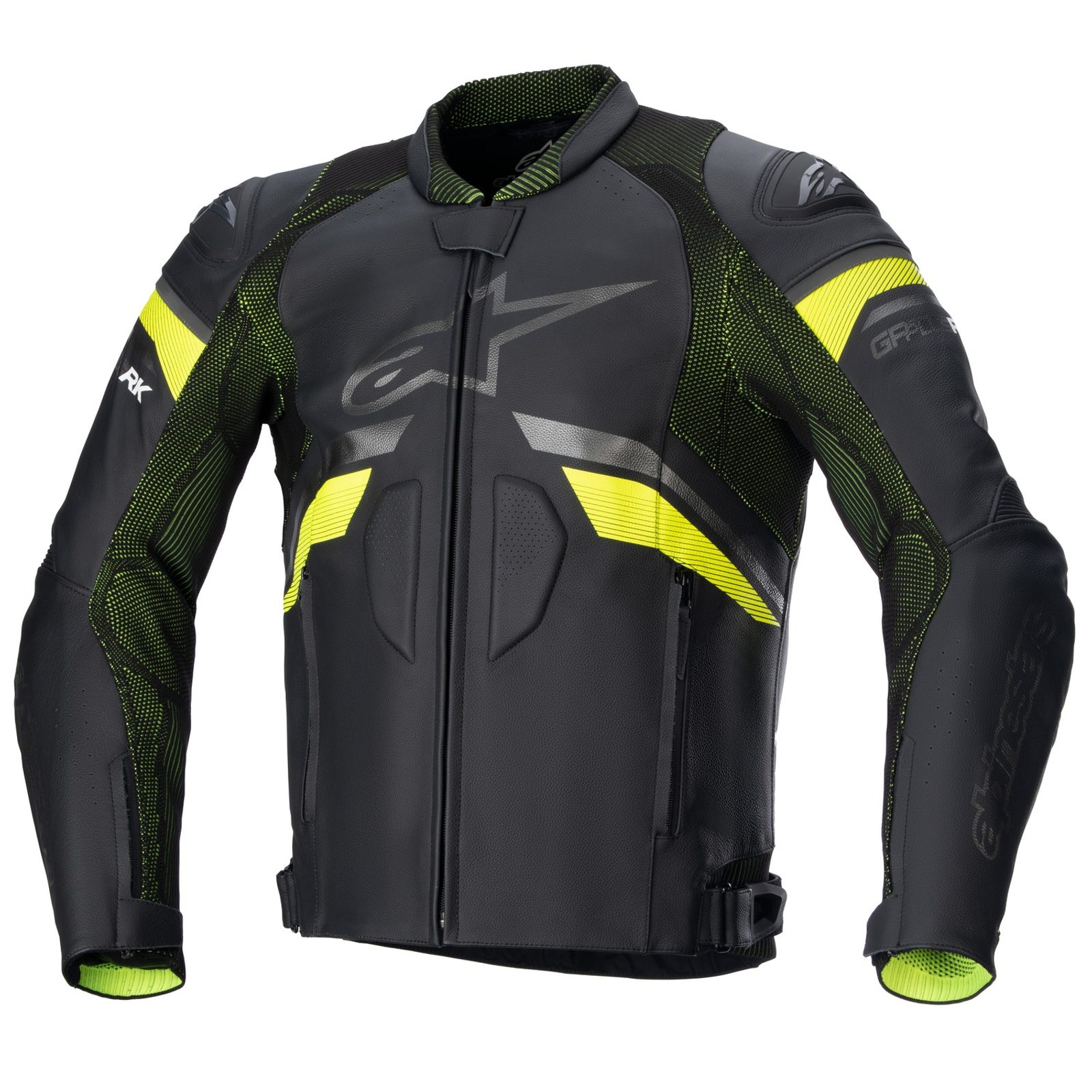 Bunda s obšívkou z výběrové hovězí kůže, která je střihově přizpůsobena pro sportovní styl jízdy na silnici a okruhu. Bunda GP PLUS R třetí generace s anatomickým střihem pro zajištění komfortu a střihu přizpůsobeného pro "sportovní" pozici v sedle. Součástí balíčku bundy jsou závody ověřené a testované protektory ALPINESTARS NUCLEON FLEX PLUS v úrovni ramen a loktů. Pro co nejlepší volnost pohybu a vysoký komfort je bunda vybavena strečovými panely v oblasti ramen, rukávů, boků a zadní části okolo lopatek. Oproti standardní verzi se provedení s příznakem RIDEKNIT liší strečovými panely tvořenými pletenou textilií RIDEKNIT®, která nabízí zvýšený komfort a rozmanité možnosti při tvorbě designu bundy. Bunda je střihově přizpůsobena pro možnsot použití airbagových vest TECH-AIR® 5.