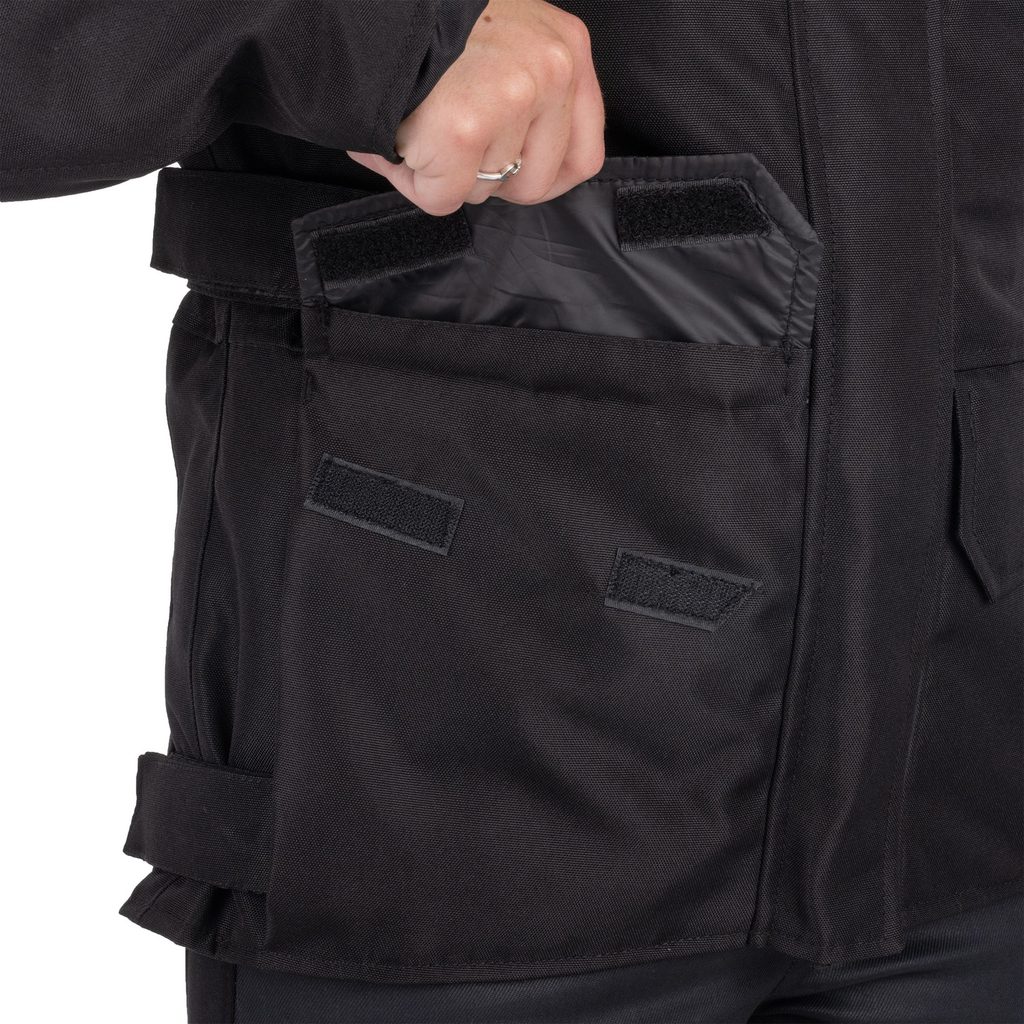 • Vnější kapsy s krycí manžetou a vnější boční kapsy s rychlým přístupem pro zahřátí rukou.