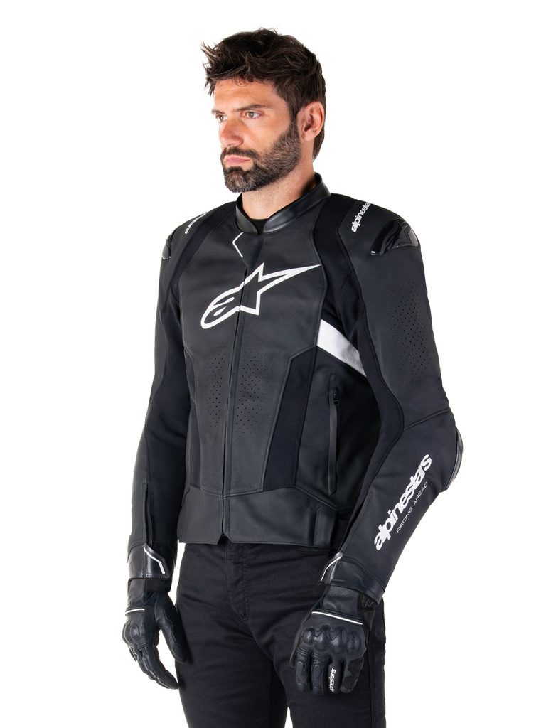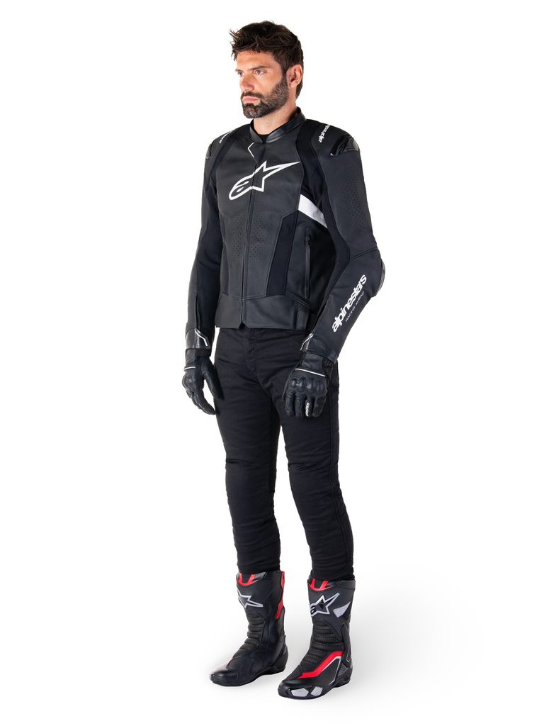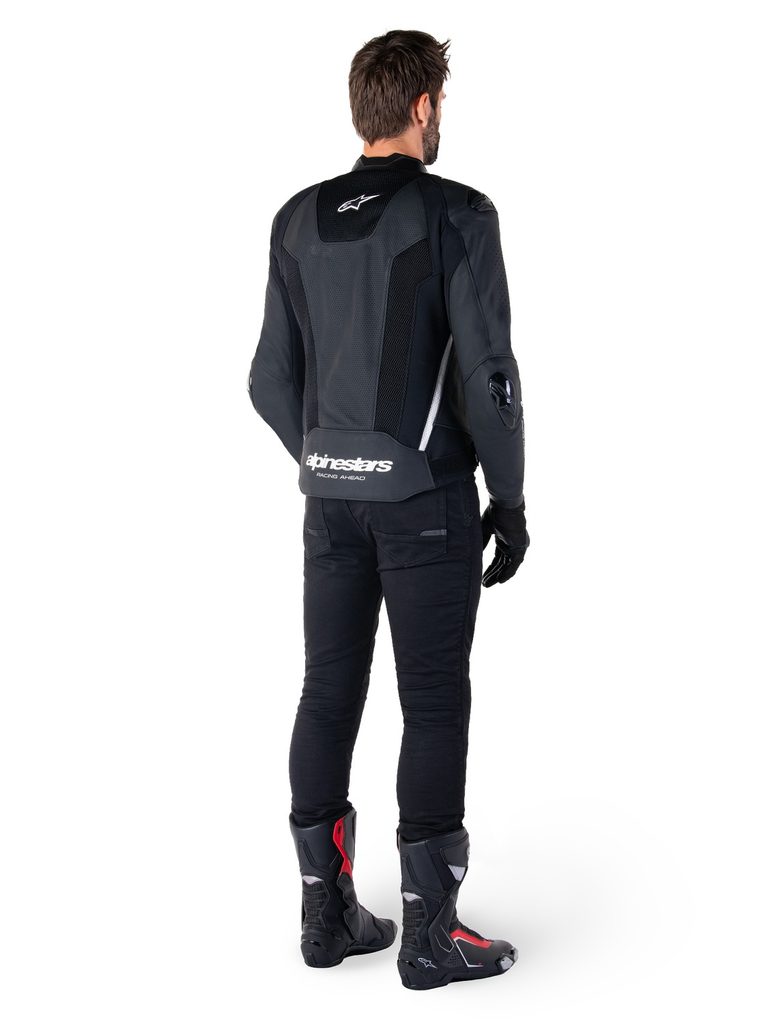 - Strečové panely z textilie HRSF pro zajištění optimální odolnosti proti oděru garantují vysoký stupeň volnosti při práci s tělem v sedle sportovního motocyklu.