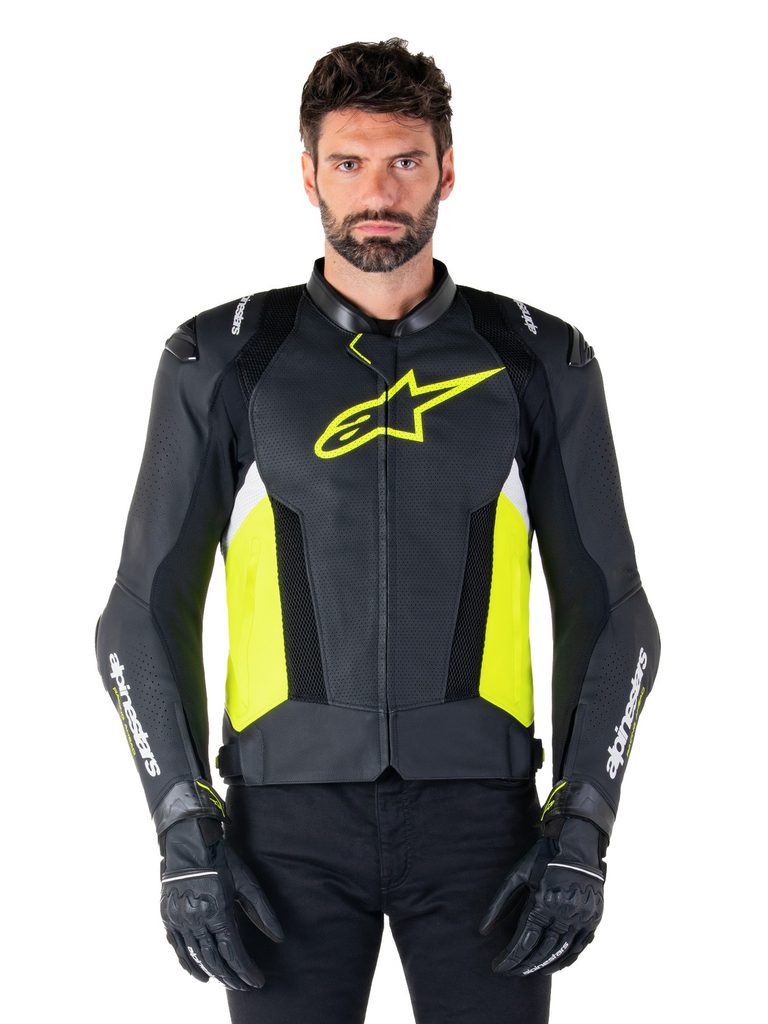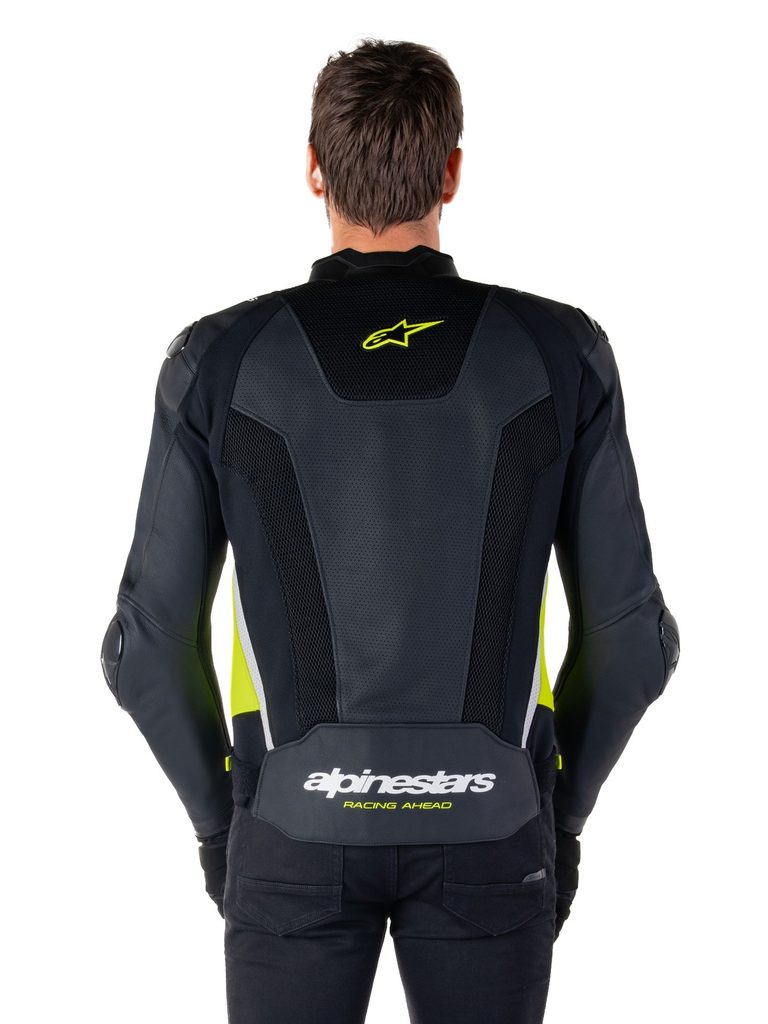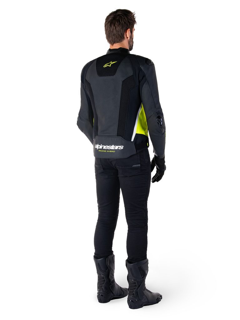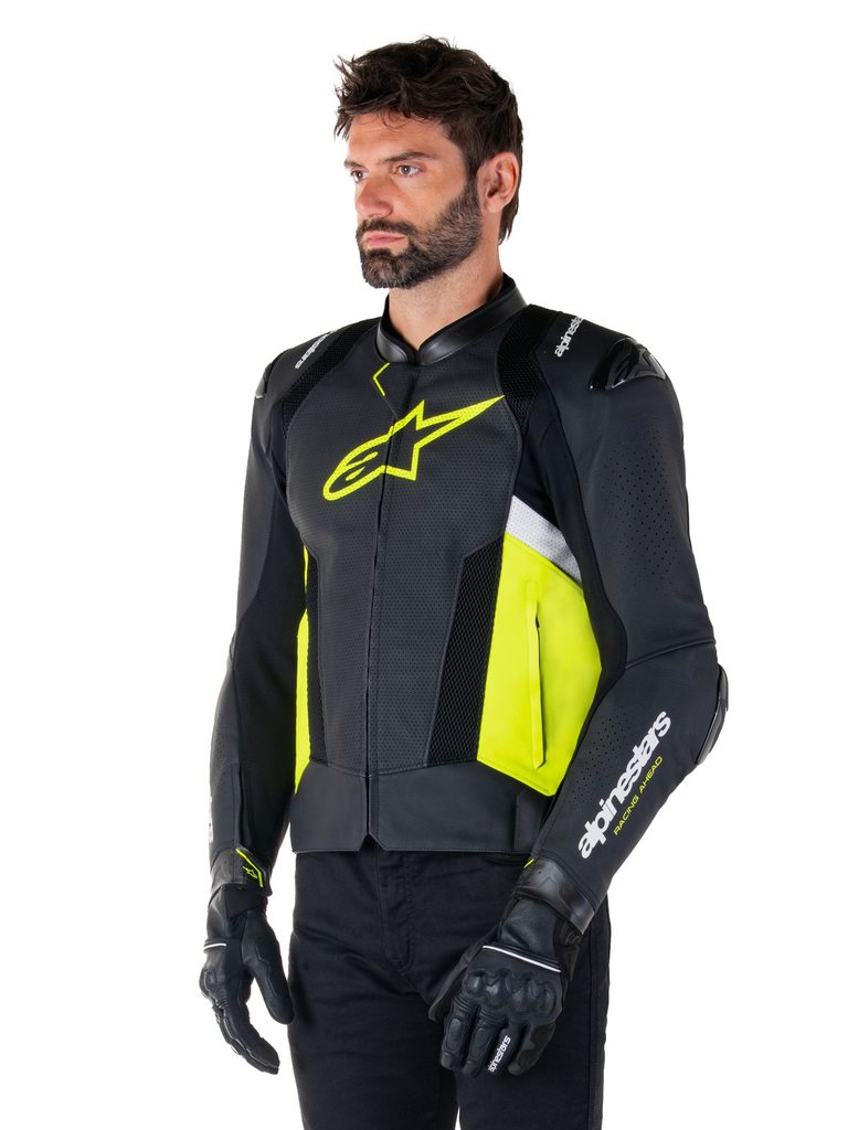 - Strečové panely z textilie HRSF pro zajištění optimální odolnosti proti oděru garantují vysoký stupeň volnosti při práci s tělem v sedle sportovního motocyklu.