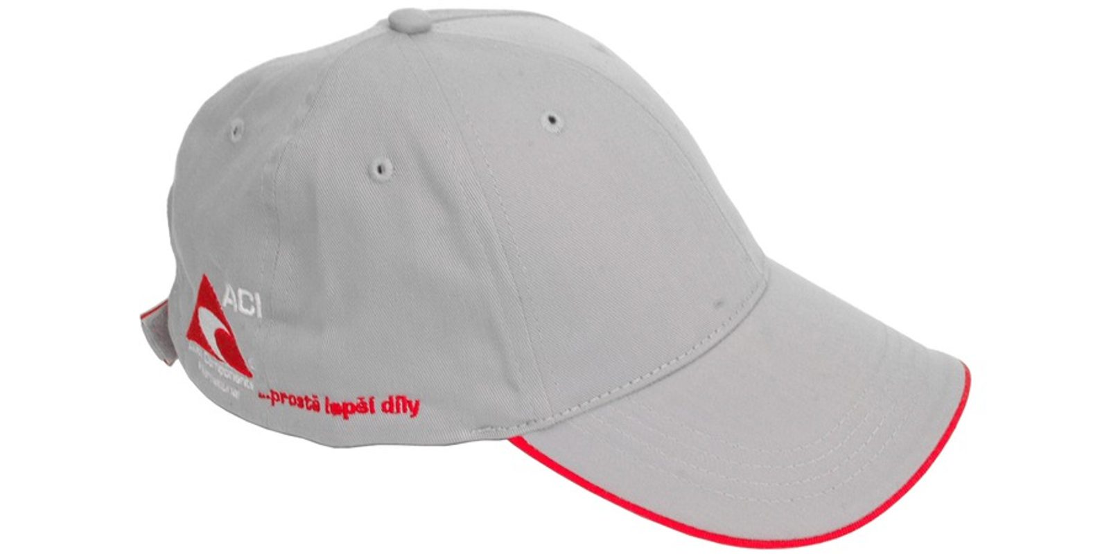 Čepice baseball šedá, červený sandwich - s kontrastní linkou v kšiltu.