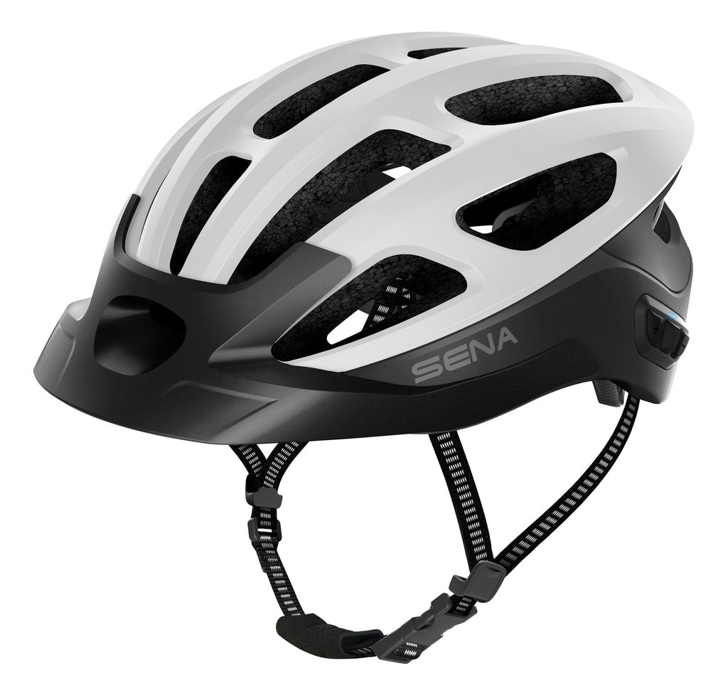 SENA R1 EVO - Cyklistická přilba s integrovaným headsetem. EVO = Mesh + zadní LED světlo + kšilt.