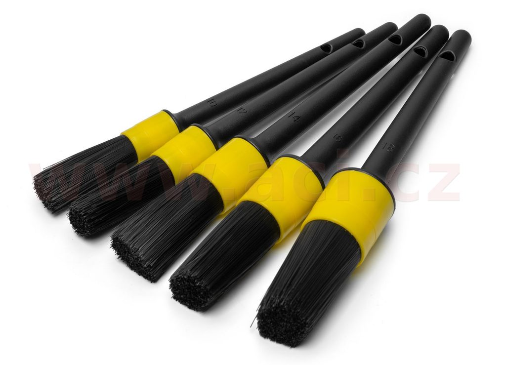 Díky různým velikostem štětců se snadno dostanete i do těžko přístupných míst, jako jsou větrací mřížky, tlačítka palubní desky, spáry mezi panely, znaky, lišty nebo šrouby kol. Jsou skvělým nástrojem pro odstraňování prachu, nečistot a zbytků čisticích přípravků z míst, kam se běžné hadříky nedostanou.