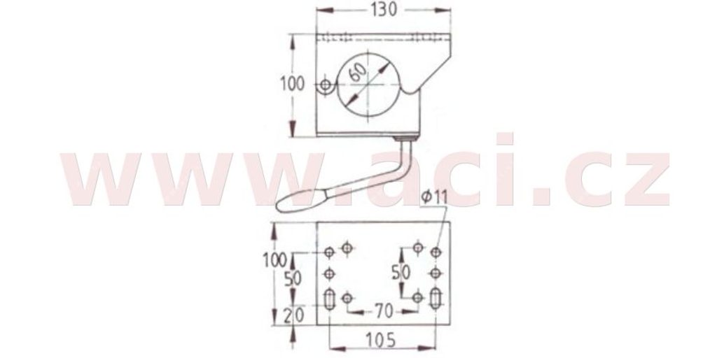 Držák lze použít pro kolečka s průměrem trubky 60 mm. Kruhové i oválné díry pro šrouby M10 v zadní stěně držáku umožňují několik různých způsobů montáže.