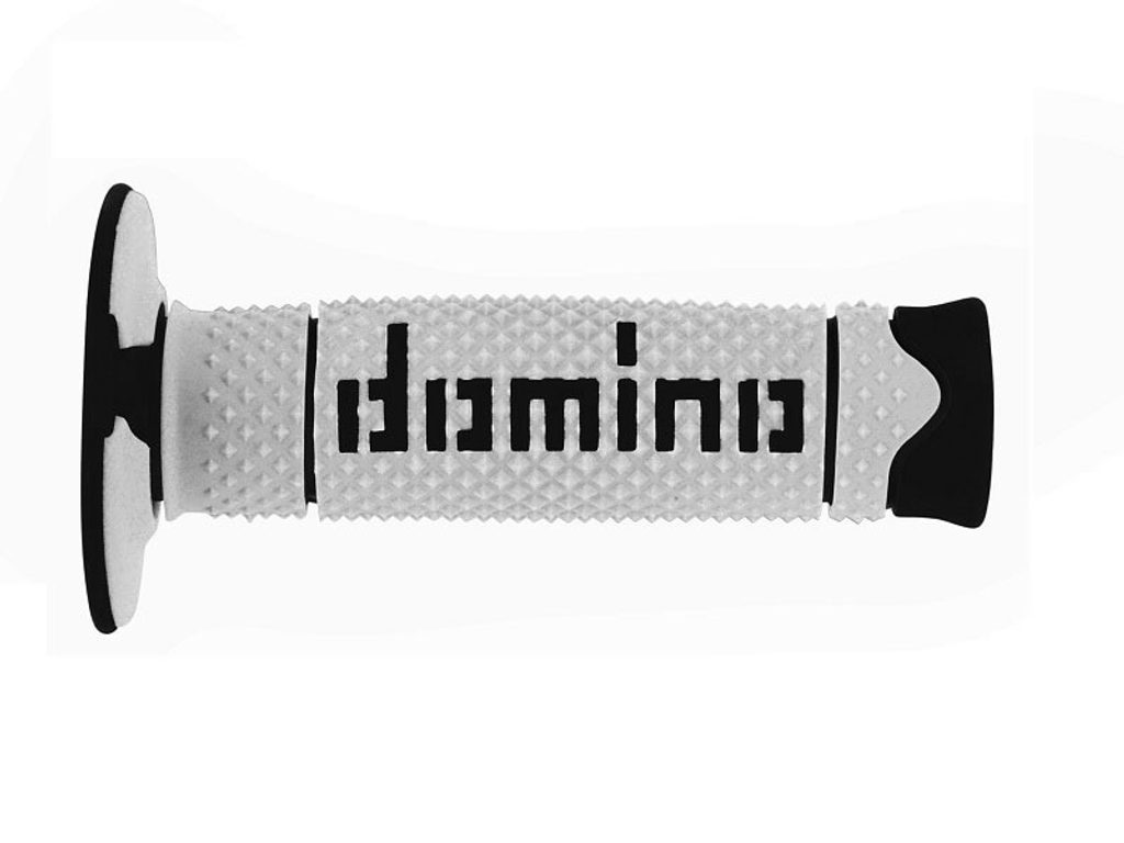 Pár gripů z dvousložkové termoplastické pryže. Velká multi-pyramidová úprava pro usnadnění přilnavosti v terénu. Drážky pro drát.