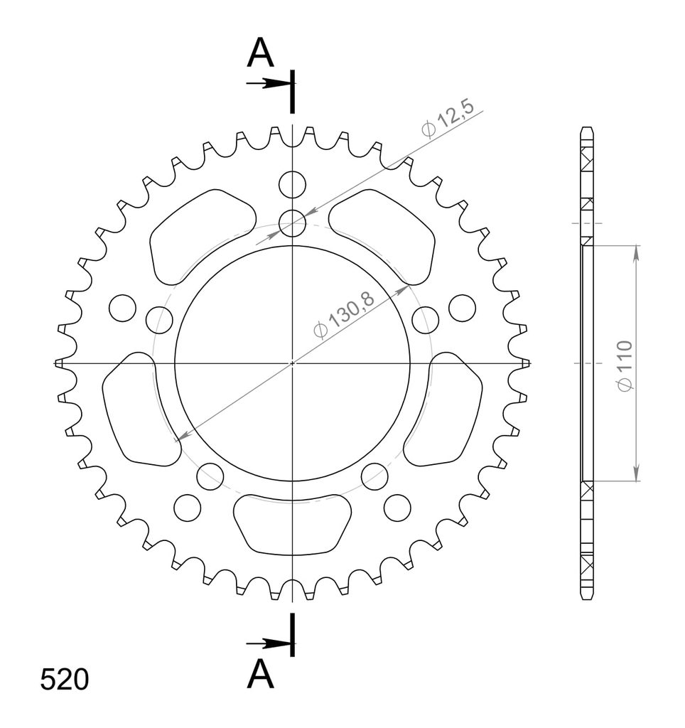 Hliníková reťazová rozeta SUPERSPROX RAL-7_520:42-BLK čierna 42T, 520