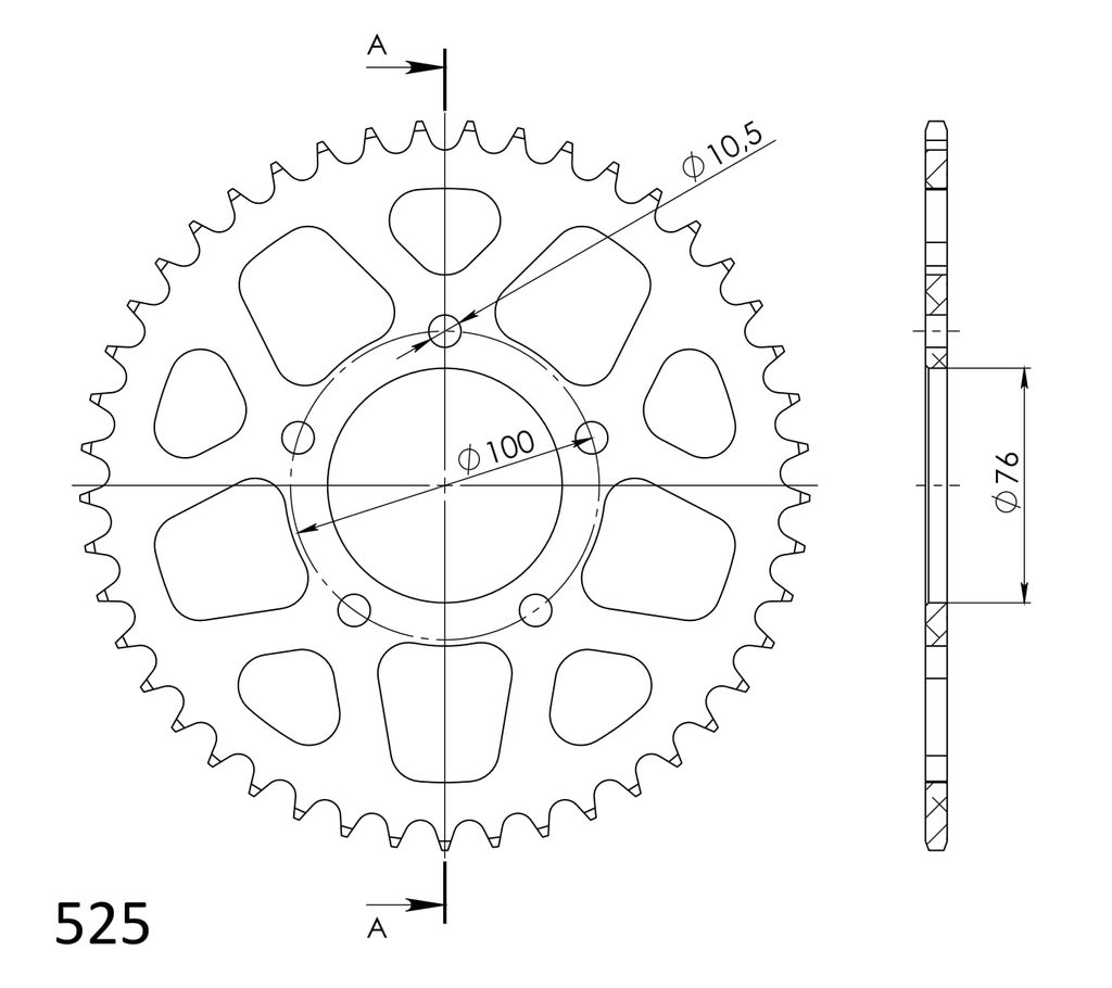 Hliníková reťazová rozeta SUPERSPROX RAL-7092:45-BLK čierna 45T, 525