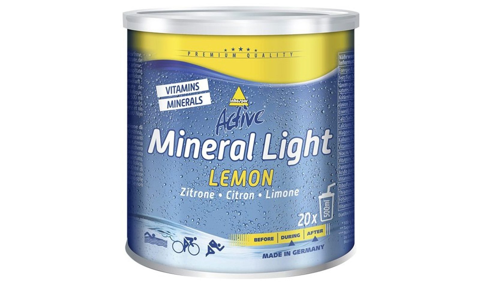 Prášek pro přípravu iontového nápoje s vitamíny a minerálními látkami.
