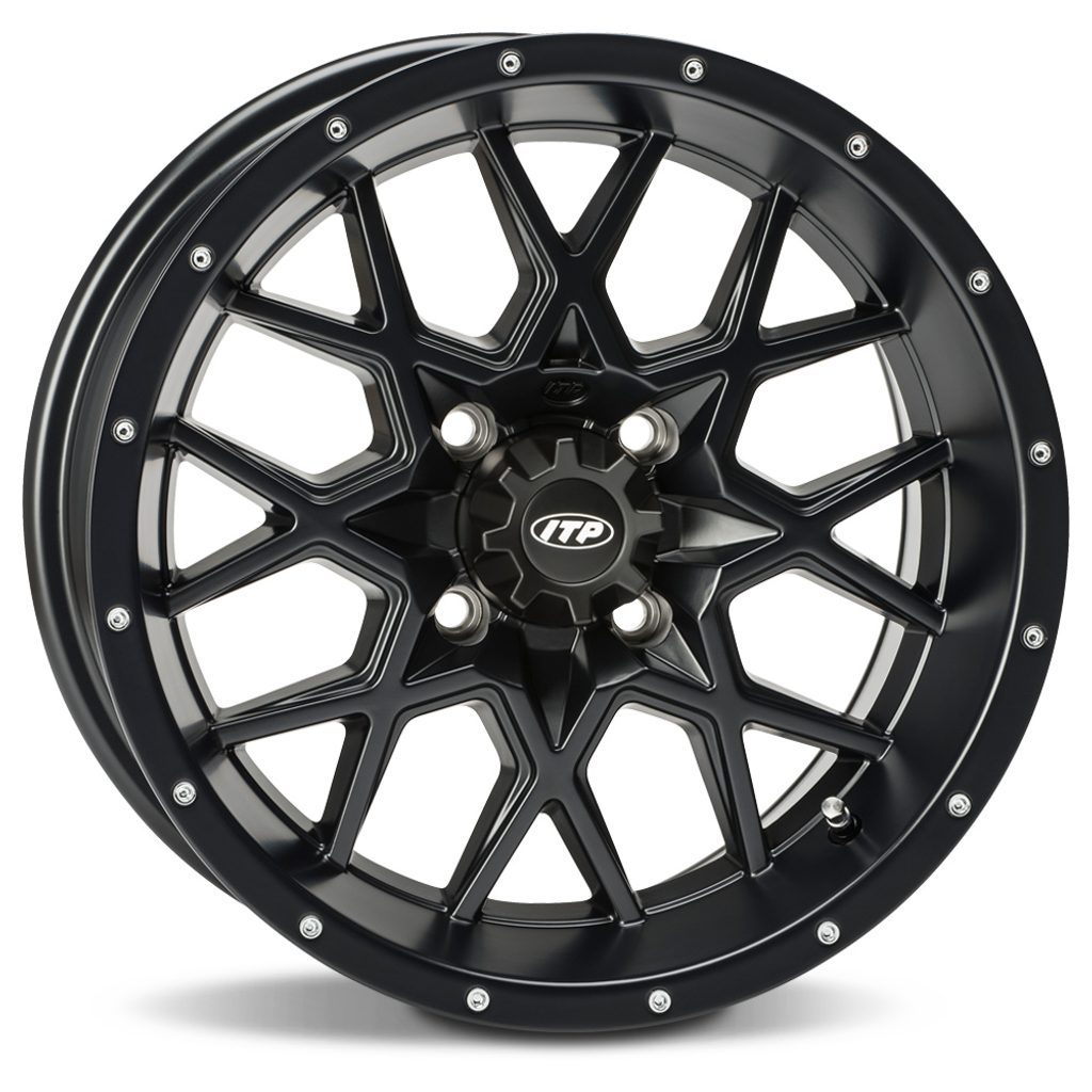 Skvěle vypadající extrémně odolné duralové disky pro užitkové čtyřkolky, atraktivní konstrukce s osmi překříženými paprsky ve tvaru X, vnitřní zesílení ráfku Rock Armor, matně černá povrchová úprava