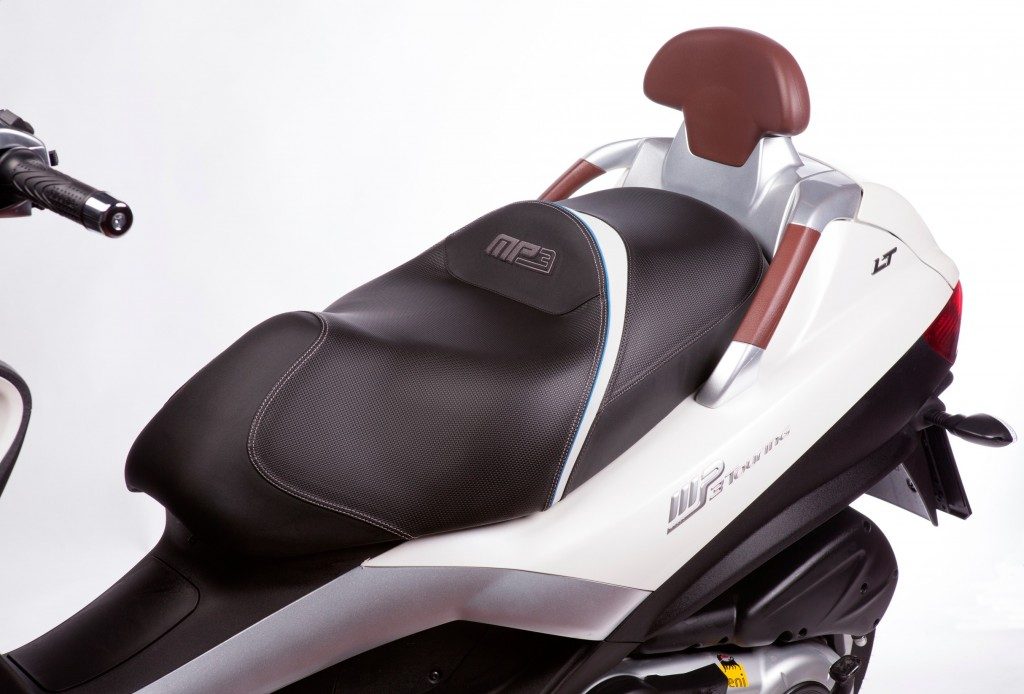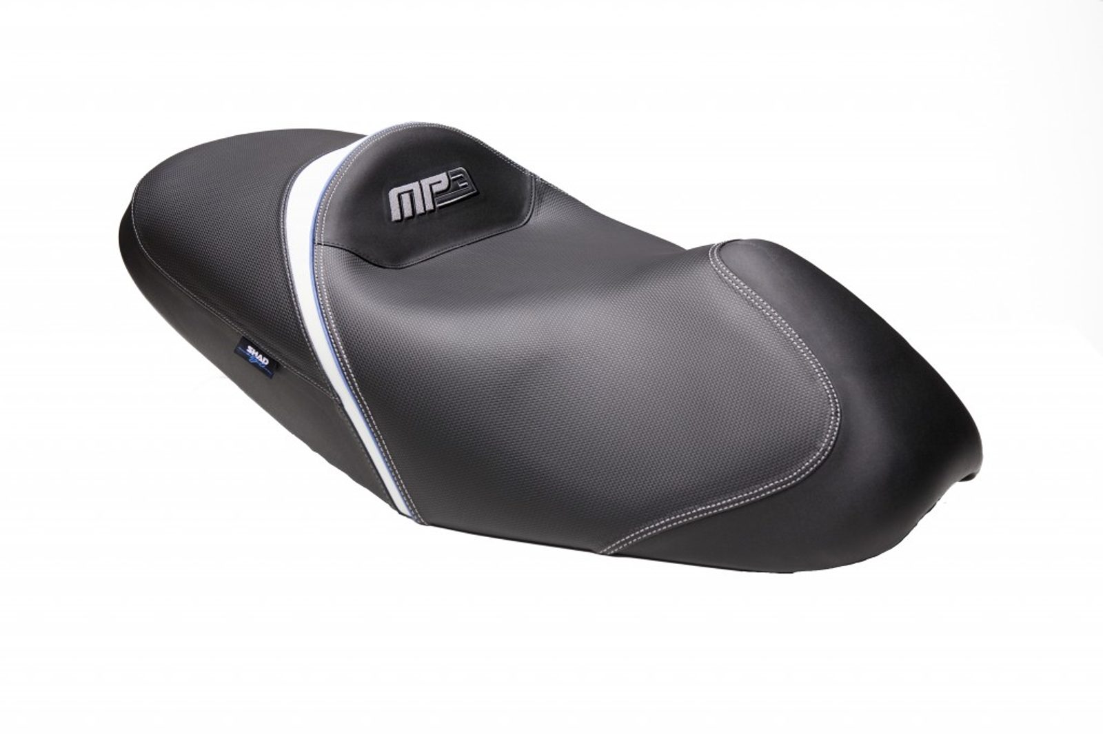 Komfortní sedlo SHAD je navrženo a vyvinuto přímo pro model MP03 se specifickým designem, které zvyšuje ergonomii a pohodlí, zvýšenou kontaktní plochu pro řidiče i spolujezdce s technologií 3D-MRSH.