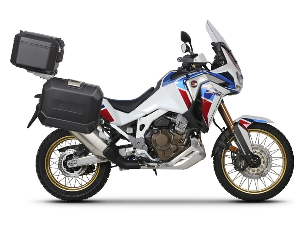 Kompletní sada bočních černých hliníkových kufrů SHAD TERRA obsahuje levý černý kufr TR47 o kapacitě 47L a menší pravý černý kufr TR36 o kapacitě 36L kvůli umístění výfuku. Pravý kufr tak nebude vyčnívat. Sada obsahuje vše, co potřebujete k montáži obou kufrů.