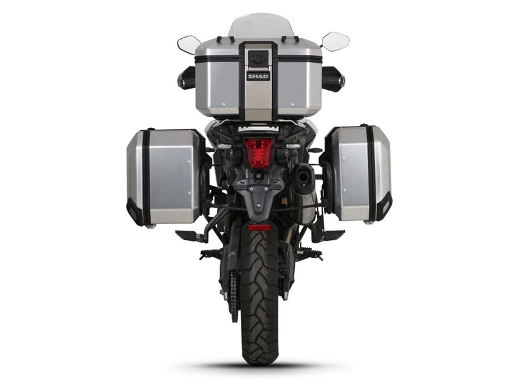 Kompletní sada hliníkových kufrů SHAD Terra obsahuje vrchní kufr TR37 s kapacitou 37L včetně plotny, levý hliníkový kufr TR47 s kapacitou 47L a pravý hliníkový kufr TR36 s kapacitou 36L kvůli umístění výfuku. Pravý kufr tak nebude vyčnívat. Sada obsahuje vše, co potřebujete k montáži obou kufrů.