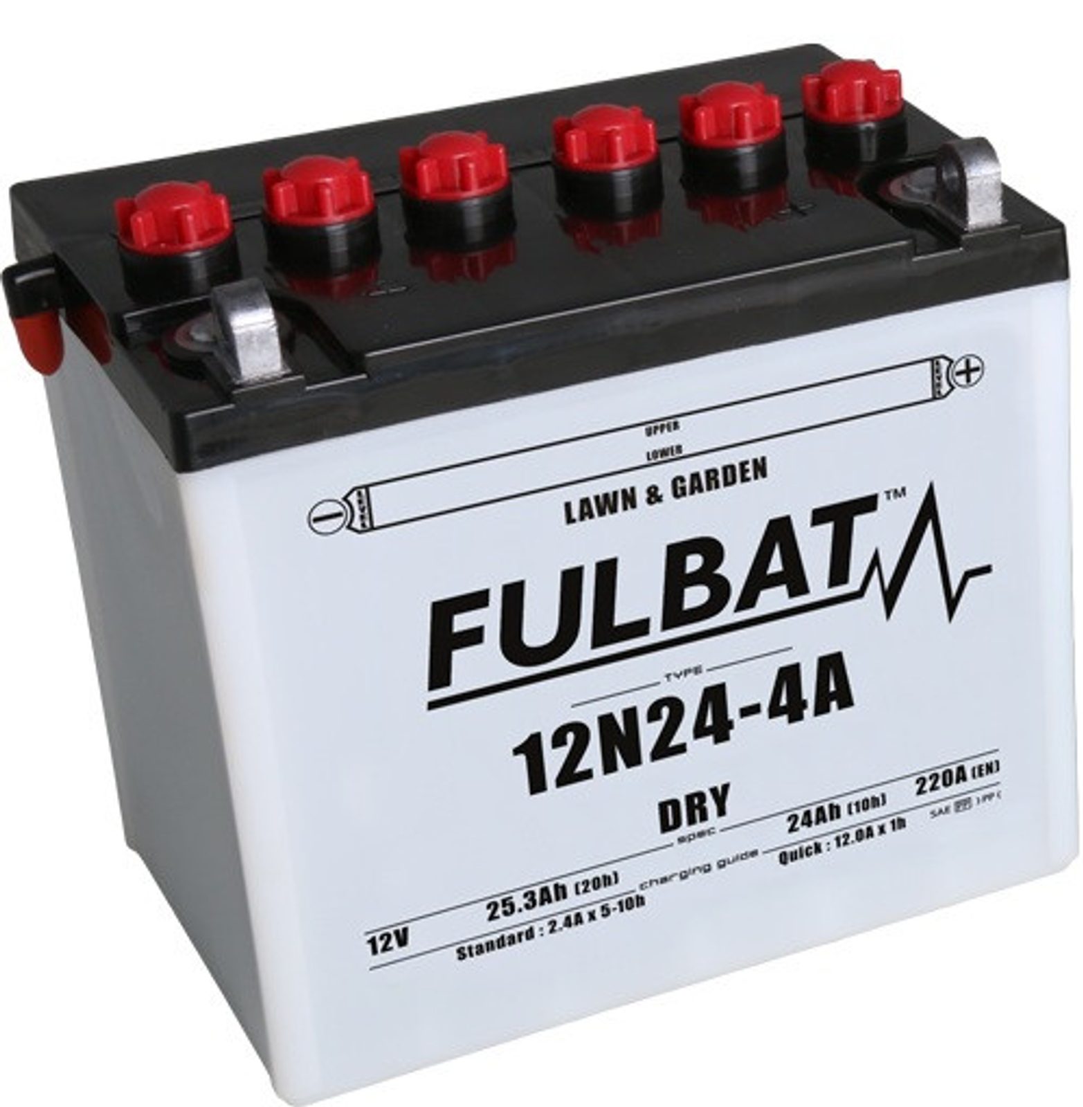 12N24-4A je součástí naší řady DRY. Je speciálně navržena tak, aby poskytovala dobrý výkon a vysokou odolnost vůči vibracím. Tato 12V baterie s kapacitou 25,3 Ah je dodávána s balením elektrolytu, musí být aktivována před prvním použitím a následně pravidelně kontrolována.