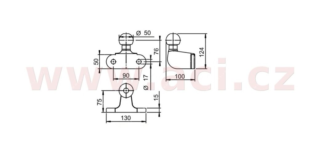 Standardní homologovaná koule ISO 50 (pr. 50 mm) s přírubou, pro max. hmotnost přívěsu 2000 kg.