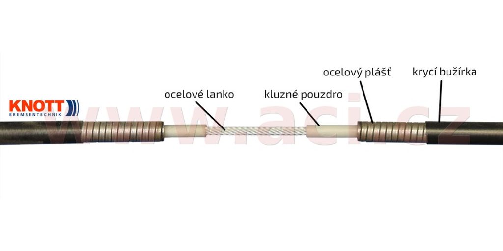 Standardní brzdové lano k nápravám KNOTT GB5 až GB18, VGB5 až VGB18 a GDB13 až GDB18. Bovden je vyvložkovaný teflonovou trubičkou, ve které běhá vlastní lano, konce bovdenu jsou před zalisováním opatřeny tukovými zátkami. Tím je zajištěna dlouhá životnost lanovodu i hladký chod s minimálním odporem.