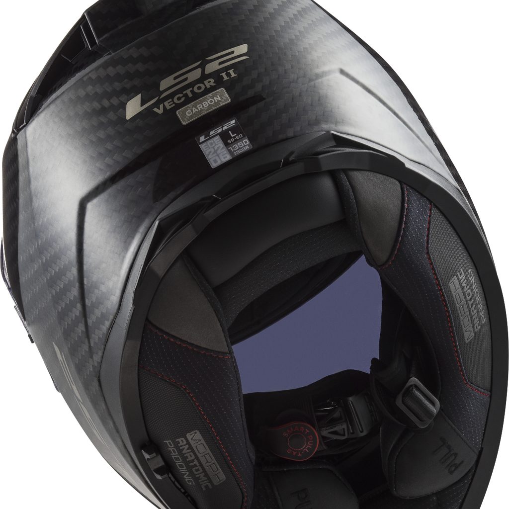 Špičková karbonová sportovně-cestovní integrální helma nejvyšší třídy s integrovanou sluneční clonou, vyjímatelné plexi s úpravou proti poškrábání, nosní deflektor, vyjímatelný podbradní spoiler, zdokonalené větrání s uzavíratelnými vstupy, velmi pohodlný antialergický vyjímatelný a pratelný interiér, zapínání rychlopřezkou, fólie Pinlock 120 Max Vision v ceně, 1300g