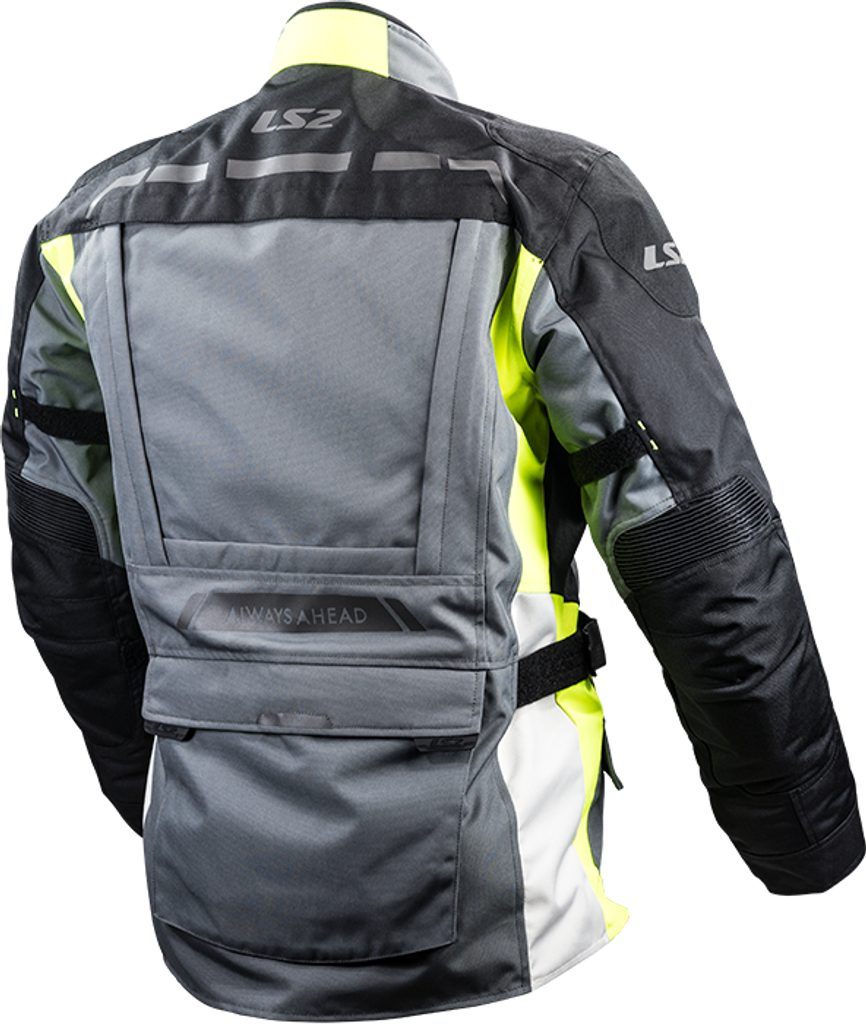 Špičková pánská textilní moto bunda, celoroční, odnímatelná prodyšná voděodolná membrána, odnímatelná termovložka, systém větracích zipů, 500D polyesterová konstrukce, zip pro spojení s kalhotami, vyjímatelné CE certifikované chrániče ramen a loktů, kapsa pro chránič zad