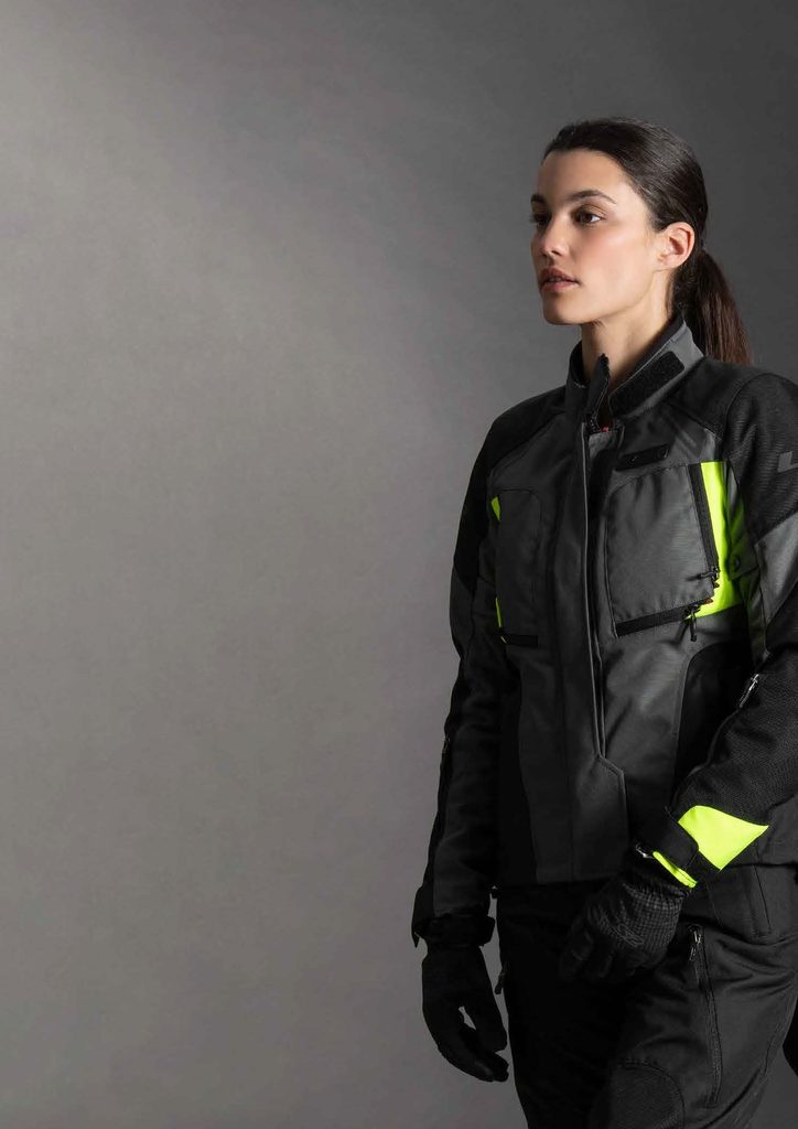 Dámská moto bunda s nepromokavou prodyšnou membránou a vyjímatelnou zimní vložkou, přední a zadní větrací zipy, zip pro spojení bundy s kalhotami, vyjímatelné chrániče loktů a ramen s CE certifikací, stahovací pásky na rukávech, kapsa na chránič zad, vysoká bezpečnost - třída ochrany AA