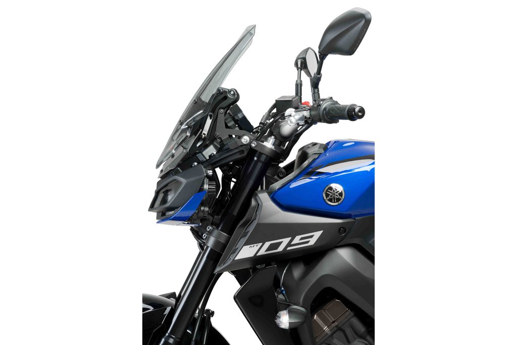 Manuální regulační systém plexiskla pro YAMAHA MT-09, který umožní posunout plexisklo až o 110 milimetrů. Dodává se s vysoce kvalitními akrylovými bočními deflektory, které zlepší aerodynamiku, ale neuškodí vzhledu MT-09. Podpěry MEM jsou vyrobeny z 2mm širokého železa, což neovlivňuje jejich lehkost a design, také jsou ošetřeny proti korozi. V nejvyšší poloze činí aerodynamická ochrana 72 % (při použití plexiskla Puig Touring). Jeho montáž je jednoduchá a hotová do 15 minut.