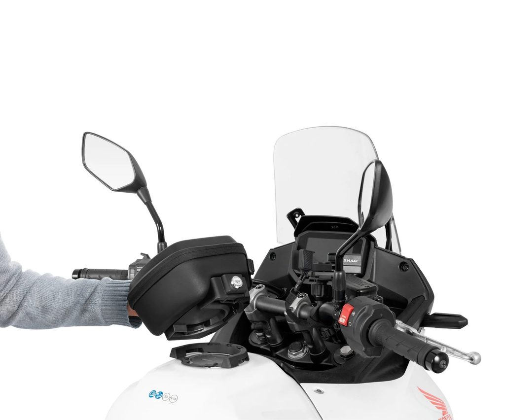 CLICK SYSTEM společnosti SHAD je evolucí systému Pin System pro upevnění tašek na nádrž. Vyniká snadným použitím a instalací na motocykl a díky tlačítku, které umožňuje rychlou montáž a demontáž pouhým stisknutím tlačítka.