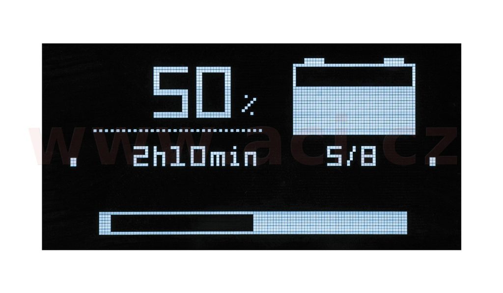 - Specifická osmistupňová (olověné akumulátory) nebo devítistupňová (lithium-železo-fosfátové akumulátory) křivka bezobslužného nabíjení.