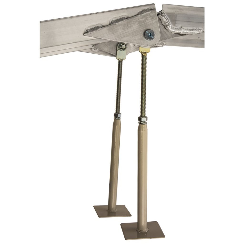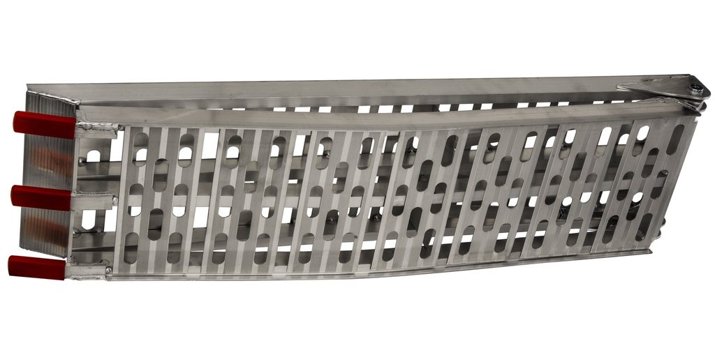 Zesílená hliníková skládací rampa se středovými podpěrami.