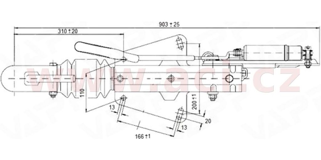 Tato nájezdová brzda je určena pro tzv. horní i spodní montáž na oje tvaru "V".