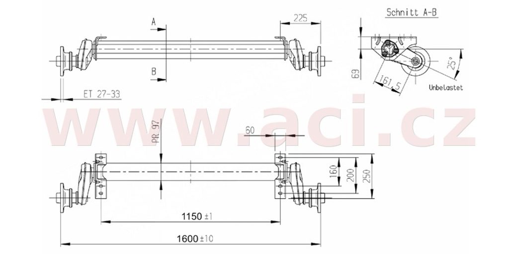 Robustní nebrzděná náprava AL-KO UBR 1200-5 s nosností 1300 kg je osazena kvalitními zapouzdřenými bezúdržbovými ložisky a vybavena systémem odpružení AL-KO v gumových pružicích vložkách. Díky speciálnímu tvarování vnitřního uložení i vnějšího pláště nápravnice dochází při pružení nejen k prostému stlačování gum, ale i k jejich částečnému odvalovaní při obou směrech pohybu. Tím je dosaženo vysokého vlastního tlumení i bez použití přídavných hydraulických tlumičů a lepšího jízdního komfortu než u standardních náprav se čtvercovým průřezem nápravnice.