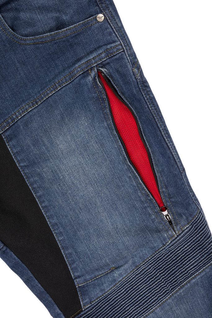 - Jeansy vyztužené podšívkou obsahující DuPont™ Kevlar® aramidová vlákna.