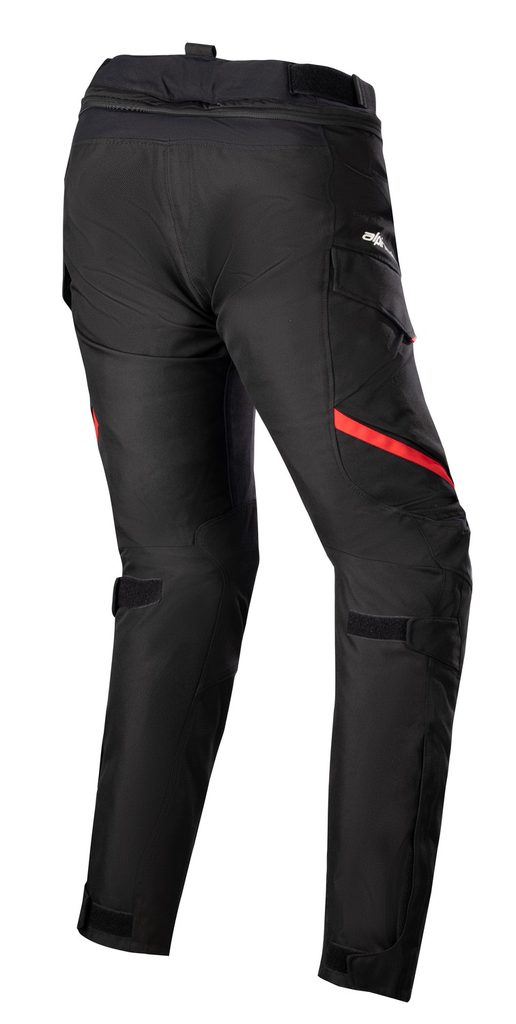 - Zalomený střih nohavic s kónickým cestovním střihem, strečové textilní panely nad koleny a v úrovni zadní části pasu.