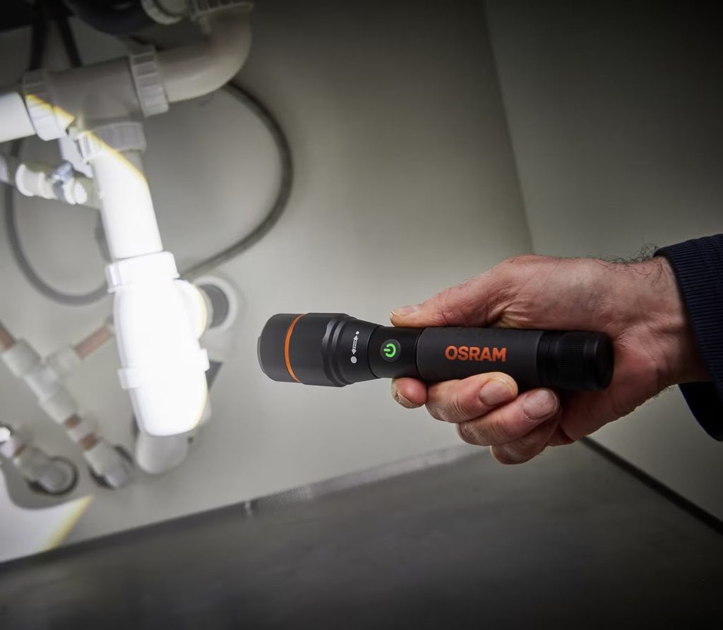 OSRAM LEDinspect™ PRO TORCH 800 je výkonná a odolná svítilna LED určená pro profesionály, kteří potřebují jasné a spolehlivé osvětlení v náročných pracovních podmínkách. Je vyrobena z robustního hliníku s gumovou rukojetí, která zajišťuje pohodlné držení, takže je ideální pro dílny, garáže a venkovní použití.