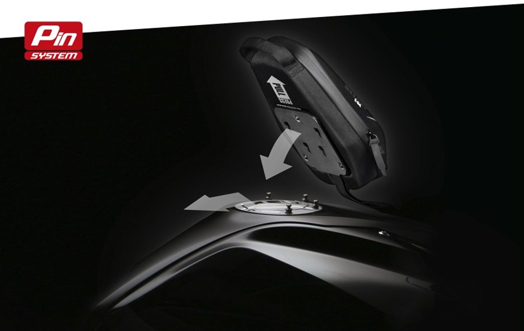 Inovativní PIN SYSTEM umožňuje bezpečně a snadno připevnit tašku k nádrži motorky. 3 nebo 4 z původních šroubů víčka nádrže jsou nahrazeny diskrétními „piny“, což činí celou montáž velmi jednoduchou a hotovou za pár minut. Kompatibilní s taškami E04P, E10P a E16P. Stačí si vybrat tu správnou montážní sadu pro váš model motorky.