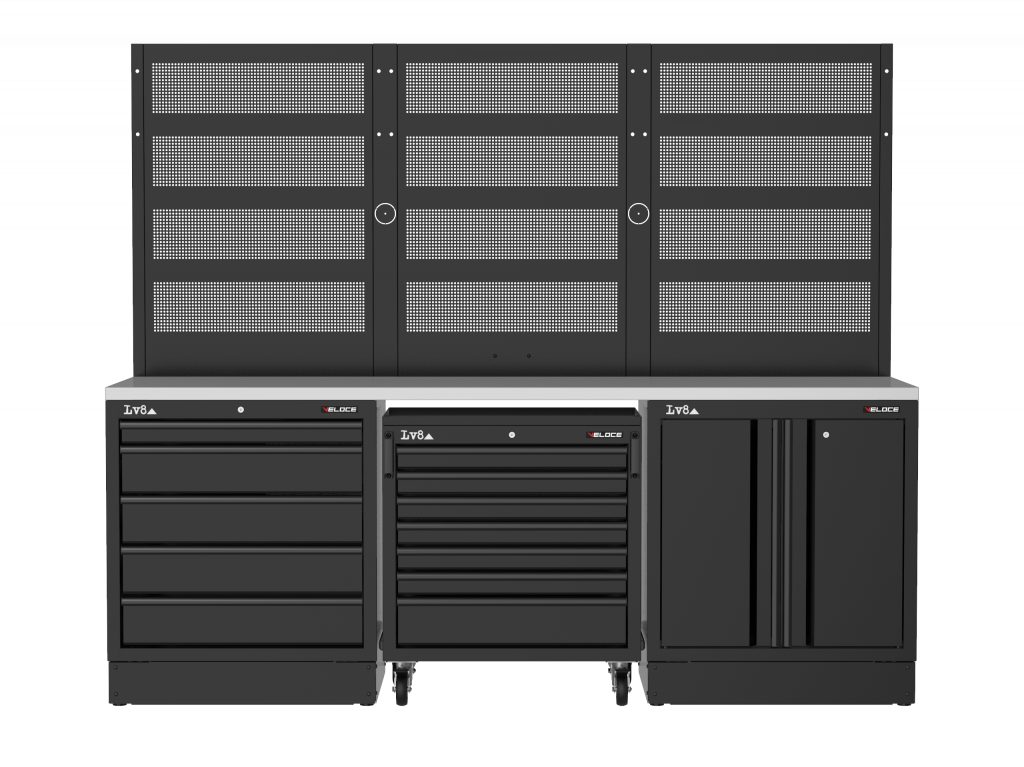 • 3 perforované panely pro zavěšení nářadí a doplňků