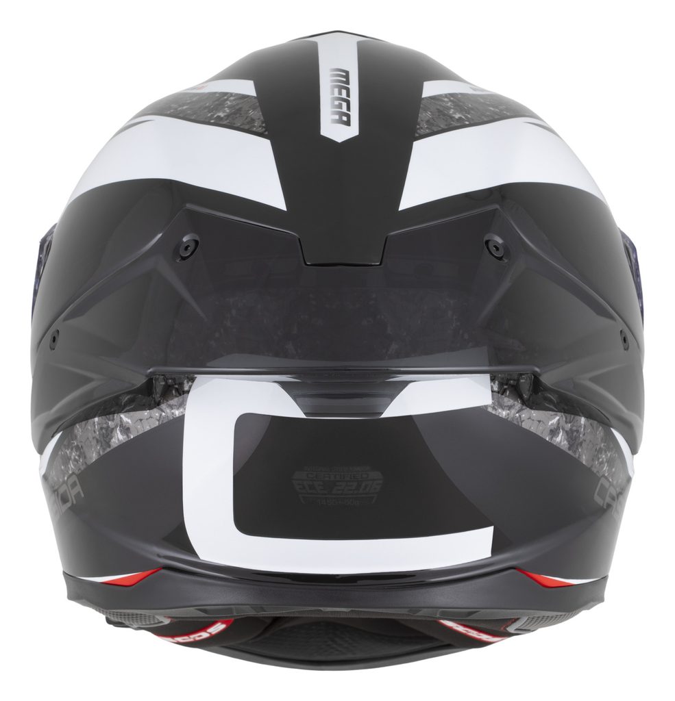 • Dlouhý, odnímatelný aerodynamický spoiler součástí přilby. Možnost dokoupení krátkého spoileru v rámci nabídky doplňkového příslušenství.