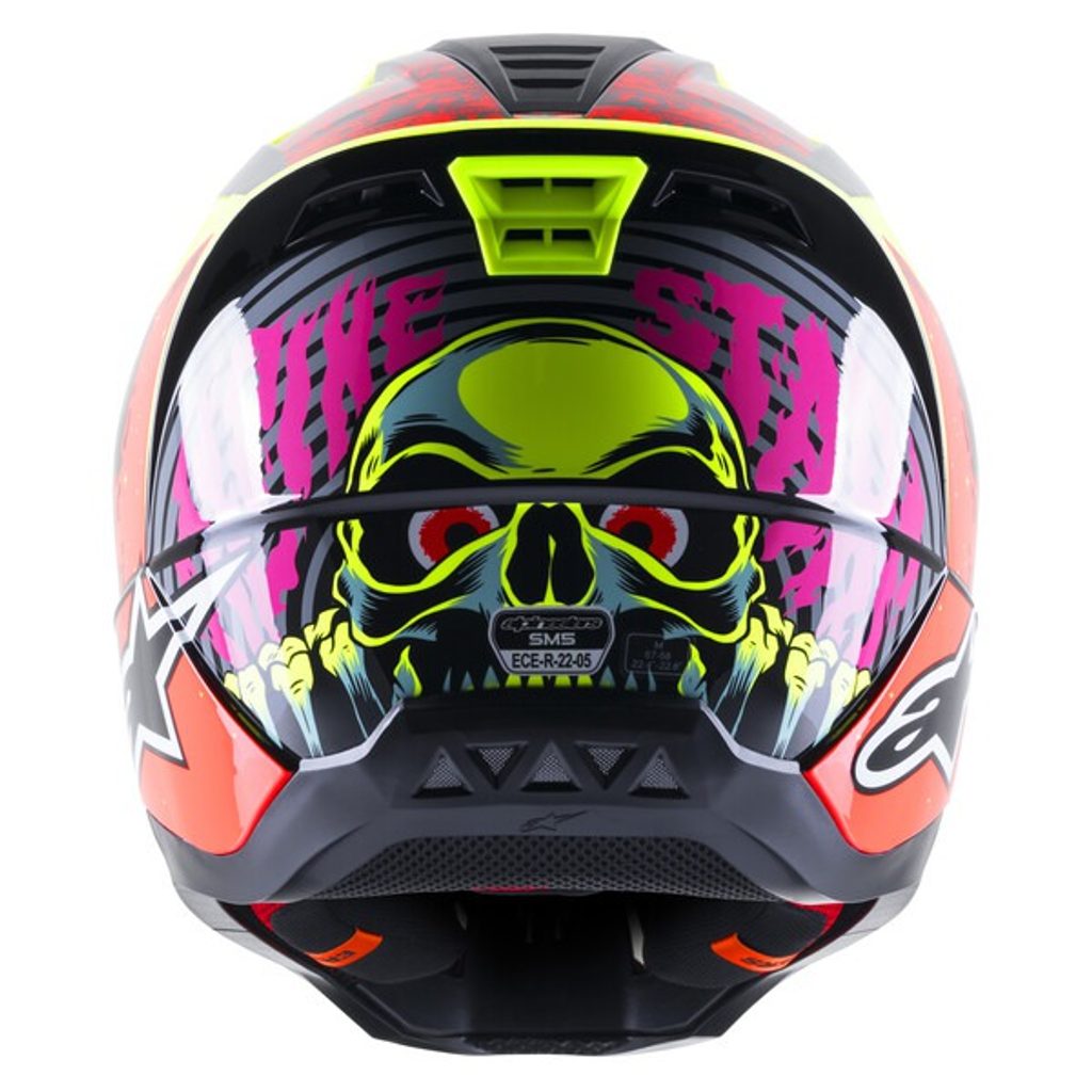 Nový model přilby S-M5 je výsledkem více než 5-ti let intenzivního zkoumání, vývoje a testování. Cílem bylo zhotovení přilby, která poskytuje optimální kombinaci ochrany a komfortu. Lehká skořepina představuje vstřikovaný termoplast ze speciální směsi polymeru, která je vstřikovaná v různých tloušťkách na potřebných místech. Díky tomu je dosaženo skvělé ochrany proti rázovým silám na potřebných plochách s dobrým poměrem hmotnosti přilby. Vícepanelové jádro přilby s EPS panely o pěti různých hustotách zajišťuje správnou hustotu EPS v konkrétní části přilby. Mezi další důležité přednosti patří konstrukce polstrování ve spodních/bočních partiích přilby v oblasti límce, které zajišťuje efektivní roznesení sil, přenášených na horní oblast klíční kosti. Přilba obsahuje kšilt s patentovaným mechanismem rychloodepínání kšiltu v případě pádu, stejně jako u vyšších modelů z nabídky terénních přileb ALPINESTARS.
