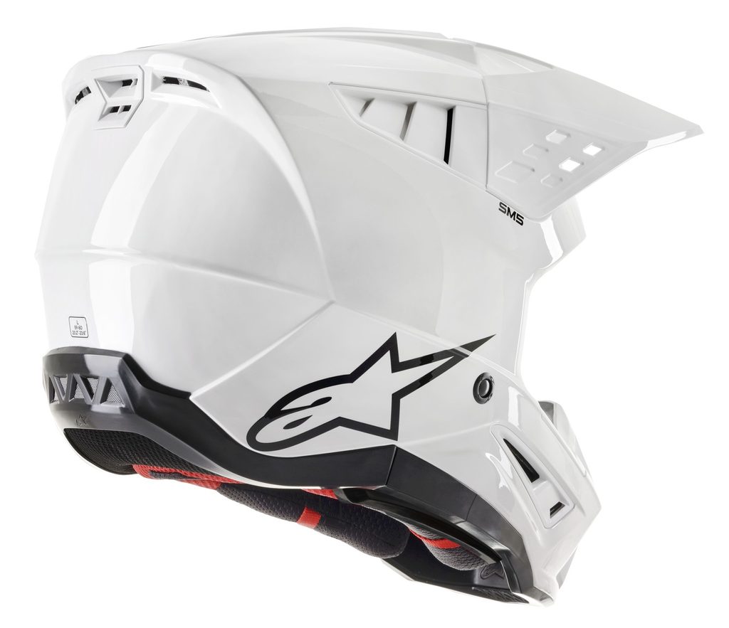 Model přilby S-M5 je výsledkem více než 5-ti let intenzivního zkoumání, vývoje a testování. Cílem bylo zhotovení přilby, která bude bezpečná a navržená tak, aby poskytla optimální kombinaci ochrany a komfortu. Lehká skořepina představuje vstřikovaný termoplast ze speciální směsi polymeru, která je vstřikovaná v různých tloušťkách na potřebných místech. Díky tomu je dosaženo skvělé ochrany proti rázovým silám na potřebných plochách s dobrým poměrem hmotnosti přilby. Vícepanelové jádro přilby s EPS panely o pěti různých hustotách zajišťuje správnou hustotu EPS v konkrétní části přilby. Mezi další důležité přednosti patří konstrukce polstrování ve spodních/bočních partiích přilby v oblasti límce, které zajišťuje efektivní roznesení sil přenášených na horní oblast klíční kosti. Přilba obsahuje kšilt s patentovaným mechanismem rychloodepínání kšiltu v případě pádu, stejně jako u vyšších modelů z nabídky terénních přileb ALPINESTARS.