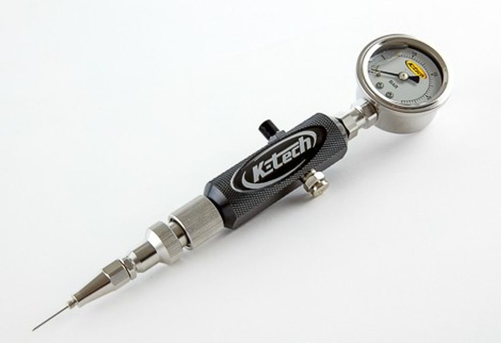 S tímto nástrojem zvládnete naplnit tlumiče pomocí Schrader ventilků. Dodává se s jehlou, která umožňuje plnit i tlumiče s gumovými membránami. Tlakoměr je naplněný glycerinem a poskytuje tak stabilní hodnoty. Pro přesné nastavení tlaku je na manometru pružinový tlakový uvolňovací ventil.