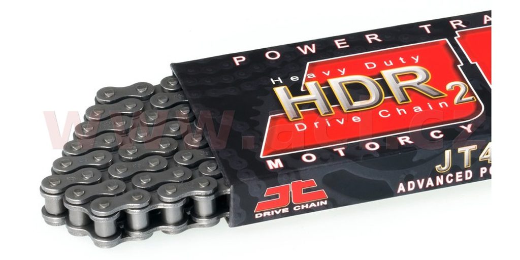 Popis: HDR (Heavy Duty Chain) je primárně motokrosový bezkroužkový řetěz vhodný i pro silniční a adventure motocykly malých kubatur