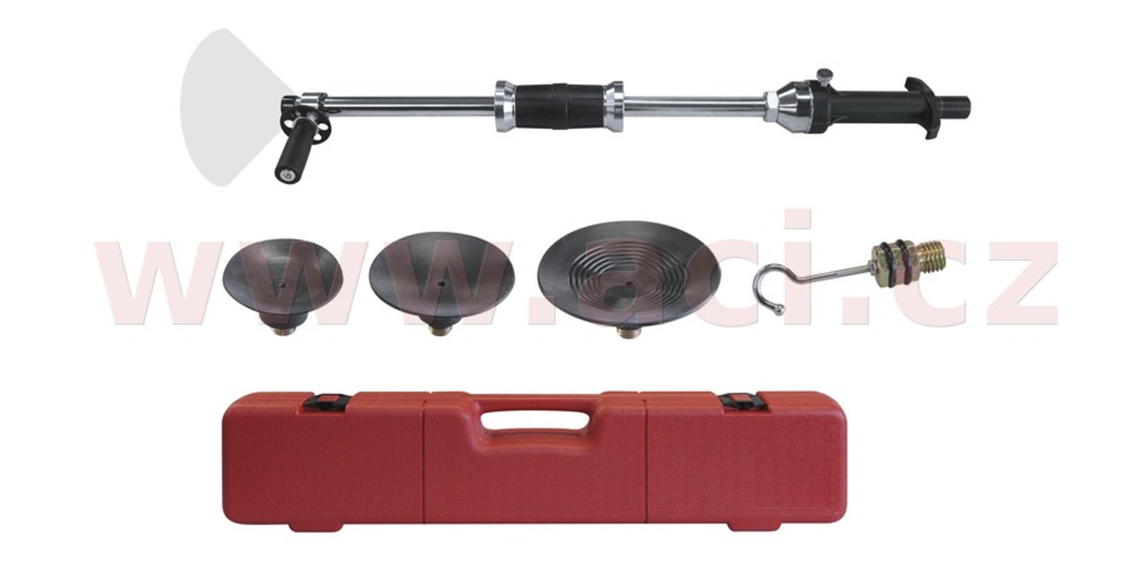 Ruční reverzní kladivo se 3 sacími podložkami (průměry 75, 100, 125 mm) a manuálním pumpováním je speciální nástroj určený především pro opravy karoserií automobilů. Umožňuje efektivní a šetrné vytahování promáčklin bez poškození laku. Díky kombinaci kladiva a silné přísavky, kterou aktivujete ruční pumpou, lze snadno a bezpečně opravit menší i větší deformace plechu.