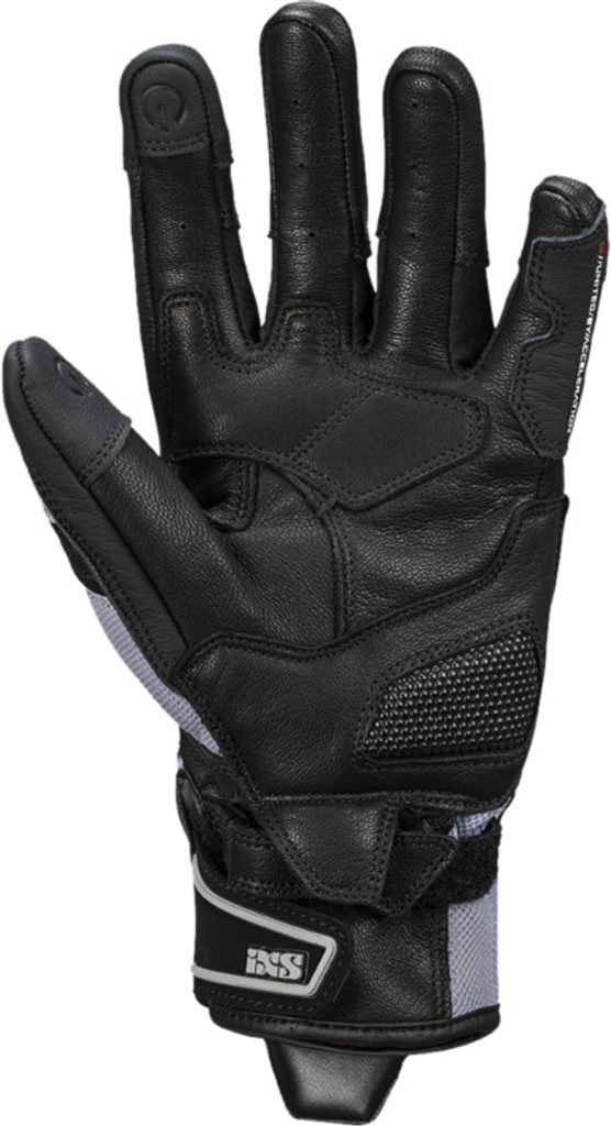 Důraz je kladen na bezpečnost a odolnost – tvarované chrániče z TPU na prstech a ventilační systém iXS Air-intake nad klouby zajišťují jak ochranu, tak proudění vzduchu. Dlaň je chráněná dvojitou vrstvou kůže, zatímco spodní část dlaně posiluje extrémně odolný materiál SuperFabric® spolu s další vrstvou kůže. Výsledkem jsou rukavice, na které se můžeš spolehnout.