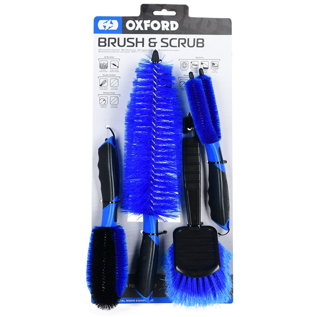 Sada 4 ks kartáčů různých tvarů, vhodných pro čistění motocyklů a jiných dopravních prostředků.